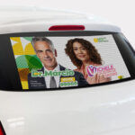 Adesivo Para-choque Eleições – 76x260mm, 110x300mm em Vinil Adesivo Branco Brilho 120g – 4×0 – Sem Enobrecimento – Refile