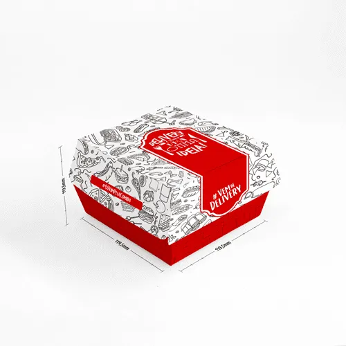 Consulte Preço100 Embalagem para Hambúrguer e Lanche – 95x65x105mm em Cartão Triplex Certificado 300g – 4×0 – Sem Enobrecimento