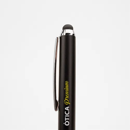 Consulte Preço10 Caneta Austrália – 7x50mm em Plástico Preto – 4×0 – Impressão Digital UV – Acionamento por Giro – Ponteira Touch