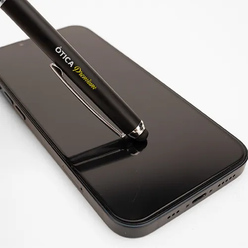 10 Caneta Austrália – 7x50mm em Plástico Preto – 4×0 – Impressão Digital UV – Acionamento por Giro – Ponteira Touch
