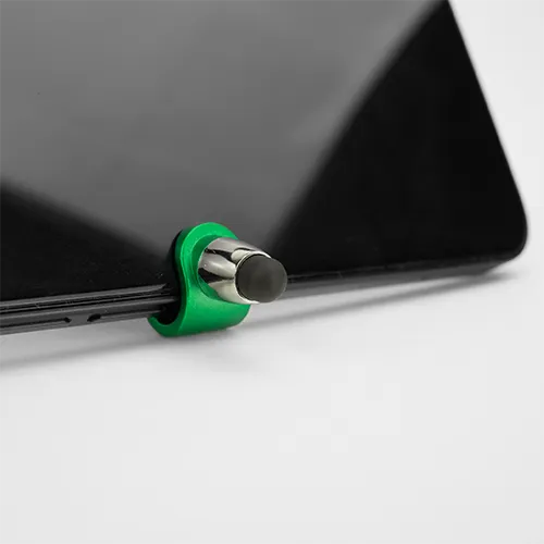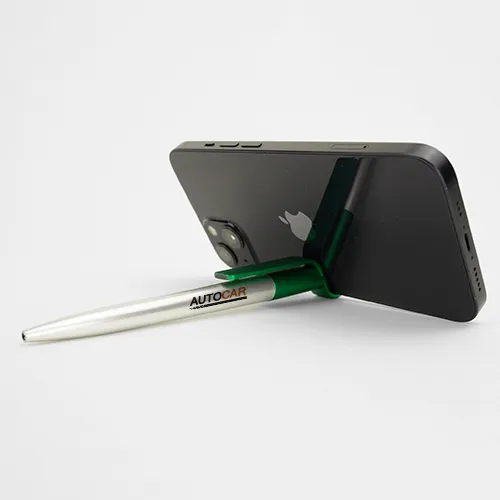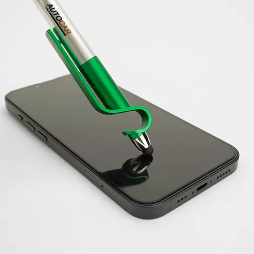10 Caneta Grécia – 7x50mm em Plástico Verde – 4×0 – Impressão Digital UV – Acionamento por Giro – Ponteira Touch – Suporte para Celular